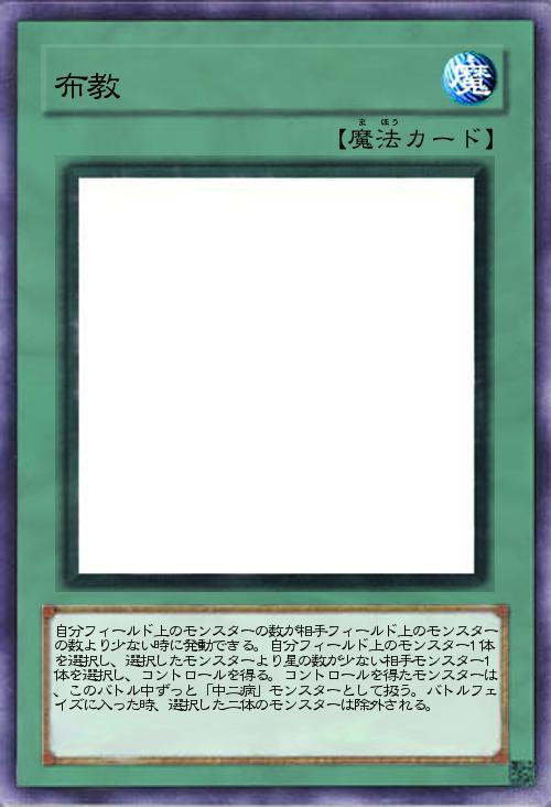 | 自分フィールド上のモンスターの数が相手フィールド上のモンスターの数より少ない時に発動できる。自分フィールド上のモンスター1体を選択し、選択したモンスターより星の数が少ない相手モンスター1体を選択し、コントロールを得る。コントロールを得たモンスターは、このバトル中ずっと「中二病」モンスターとして扱う。バトルフェイズに入った時、選択した二体のモンスターを除外する。 | |||