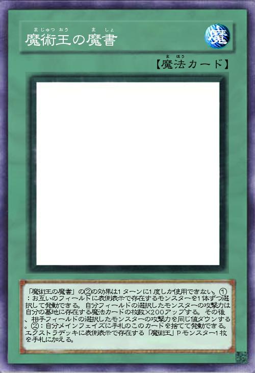 | 「魔術王の魔書」の②の効果は1ターンに1度しか使用できない。①:お互いのフィールドに表側表示で存在するモンスターを1体ずつ選択して発動できる。自分フィールドの選択したモンスターの攻撃力は自分の墓地に存在する魔法カードの枚数×200アップする。その後、相手フィールドの選択したモンスターの攻撃力を同じ値ダウンする。②:自分メインフェイズに手札のこのカードを捨てて発動できる。エクストラデッキに表側表示で存在する「魔術王」Pモンスター1枚を手札に加える。 | |||