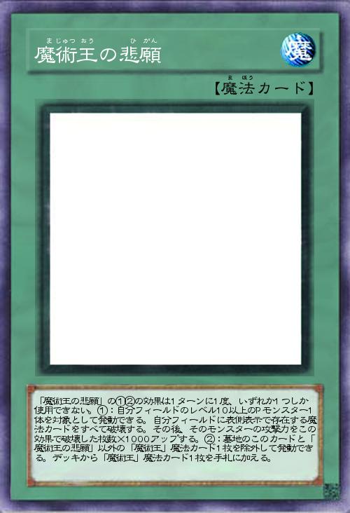 | 「魔術王の悲願」の①②の効果は1ターンに1度、いずれか1つしか使用できない。①:自分フィールドのレベル10以上のPモンスター1体を対象として発動できる。自分フィールドに表側表示で存在する魔法カードをすべて破壊する。その後、そのモンスターの攻撃力をこの効果で破壊した枚数×1000アップする。②:墓地のこのカードと「魔術王の悲願」以外の「魔術王」魔法カード1枚を除外して発動できる。デッキから「魔術王」魔法カード1枚を手札に加える。 | |||