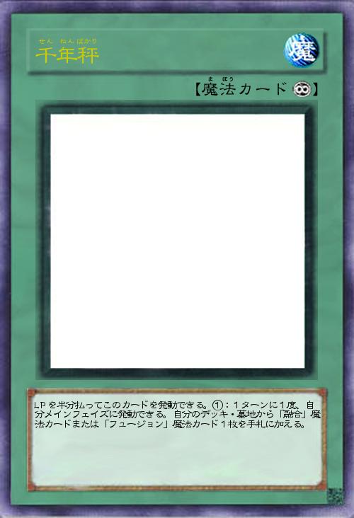 | LPを半分払ってこのカードを発動できる。①:1ターンに1度、自分メインフェイズに発動できる。自分のデッキ・墓地から「融合」魔法カードまたは「フュージョン」魔法カード1枚を手札に加える。 | |||