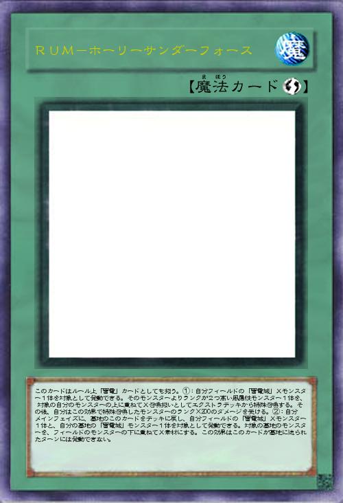 ルール上雷電カードとして扱ってRUM効果は、雷電城Xのランクを2つアップさせるRUM効果。X召喚したのちにそのランク×200のダメージを受けるデメリットがありますね。現状ネオルクセリオン以外に使うことができ、ランクが7か9を呼びだせるので、1400か1800のダメージと決して安くないので使う時は気をつけたいですね。