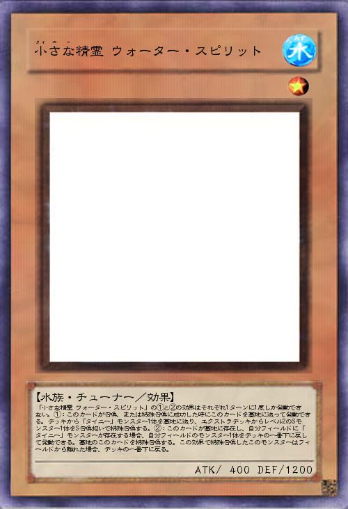 | 「小さな精霊 ウォーター・スピリット」の①と②の効果はそれぞれ1ターンに1度しか発動できない。①:このカードが召喚、または特殊召喚に成功した時にこのカードを墓地に送って発動できる。デッキから「タイニー」モンスター1体を墓地に送り、エクストラデッキからレベル2のSモンスター1体をS召喚扱いで特殊召喚する。②:このカードが墓地に存在し、自分フィールドに「タイニー」モンスターが存在する場合、自分フィールドのモンスター1体をデッキの一番下に戻して発動できる。墓地のこのカードを特殊召喚する。この効果で特殊召喚したこのモンスターはフィールドから離れた場合、デッキの一番下に戻る。 | |||