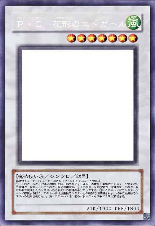 | 風属性チューナー+チューナー以外の「P・C」モンスター1体以上 ①:このカードがS召喚に成功した時、相手のフィールド・墓地から風属性モンスター1体を選んで装備カード扱いとしてこのカードに装備する。②:このカードの攻撃力・守備力は、このカードの効果で装備したモンスターのそれぞれの数値の半分アップする。③:このカードがモンスターゾーンに存在する限り、このカードは風属性モンスターとの戦闘では破壊されず、相手の風属性モンスターの効果を受けない。④:このカードは1度のバトルフェイズ中に2回攻撃できる。 | |||