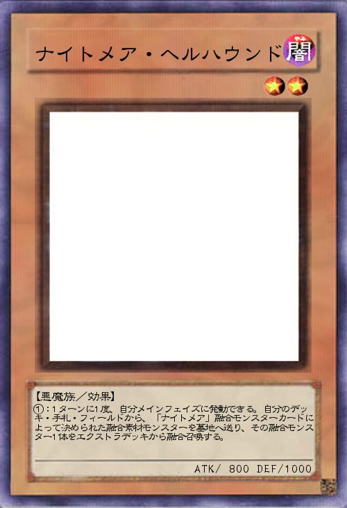 | ①:1ターンに1度、自分メインフェイズに発動できる。自分のデッキ・手札・フィールドから、「ナイトメア」融合モンスターカードによって決められた融合素材モンスターを墓地へ送り、その融合モンスター1体をエクストラデッキから融合召喚する。 | |||