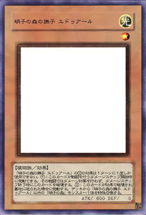 | 「硝子の森の撫子 エドゥアール」の②の効果は1ターンに1度しか使用できない。①:このカードが戦闘を行うダメージステップ開始時に発動できる。その戦闘ではダメージ計算を行わず、ダメージステップ終了時にこのカードを破壊する。②:このカードが効果で破壊され墓地に送られた場合に発動する。デッキから「硝子の森の撫子 エドゥアール」以外の「硝子の森」モンスター1体を特殊召喚する。 | |||