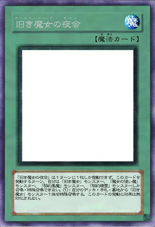 | 「旧き魔女の夜会」は1ターンに1枚しか発動できず、このカードを発動するターン、自分は「旧き魔女」モンスター、「魔女の使い魔」モンスター、「契約悪魔」モンスター、「契約精霊」モンスターしか召喚・特殊召喚できない。①:自分のデッキ・手札・墓地から「旧き魔女」モンスター1体を特殊召喚する。このカードの発動と効果は無効化されない。 | |||