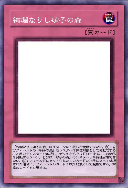 ほんとだー2:2こうかんできるわなかーどですね。もちろんそれだけでなく、硝子の森の破壊時の効果も満たすことができるのでとても便利。普通に使ってもいいし、サクリファイスエスケープ的に使ってもよさそうですね。硝子の森しかSSできなくなるデメリットがありますが、カテゴリデッキなら気にするものではないのでなかなか優秀です。そしてセット状態で破壊されてもフィールドのカードを破壊することができるとかなり扱いやすい部類の罠カードな気がしますね。破壊するカードは相手だけでなく硝子の森を破壊しての展開もできると結構テクニカルな動きもできそうなカードですね。」(2016-11-25 00:22)
