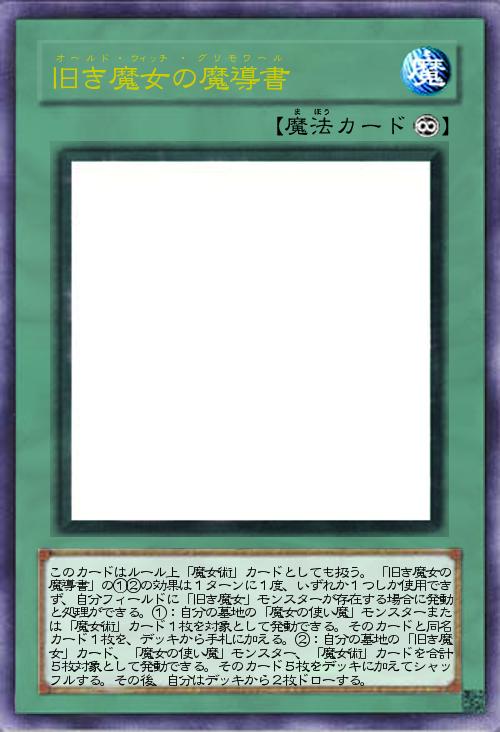 | このカードはルール上「魔女術」カードとしても扱う。「旧き魔女の魔導書」の①②の効果は1ターンに1度、いずれか1つしか使用できず、自分フィールドに「旧き魔女」モンスターが存在する場合に発動と処理ができる。①:自分の墓地の「魔女の使い魔」モンスターまたは「魔女術」カード1枚を対象として発動できる。そのカードと同名カード1枚を、デッキから手札に加える。②:自分の墓地の「旧き魔女」カード、「魔女の使い魔」モンスター、「魔女術」カードを合計5枚対象として発動できる。そのカード5枚をデッキに加えてシャッフルする。その後、自分はデッキから2枚ドローする。 | |||