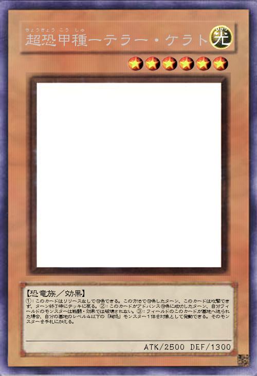 | ①:このカードはリリースなしで召喚できる。この方法で召喚したターン、このカードは攻撃できず、ターン終了時にデッキに戻る。②:このカードがアドバンス召喚に成功したターン、自分フィールドのモンスターは戦闘・効果では破壊されない。③:フィールドのこのカードが墓地へ送られた場合、自分の墓地のレベル4以下の「超恐」モンスター1体を対象として発動できる。そのモンスターを手札に加える。 | |||