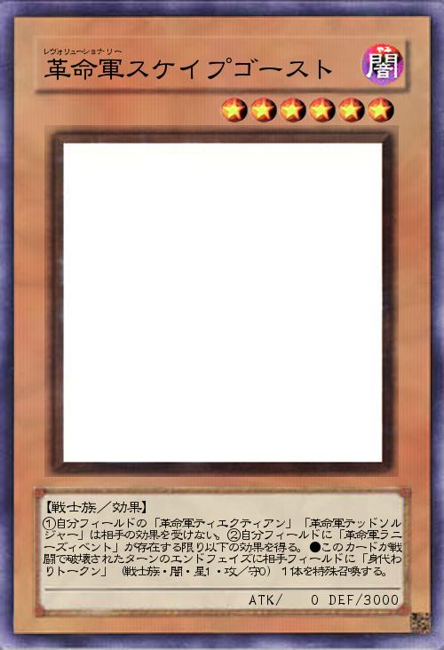 | ①自分フィールドの「革命軍ティエクティアン」「革命軍テッドソルジャー」は相手の効果を受けない。②自分フィールドに「革命軍ラニーズィベント」が存在する限り以下の効果を得る。●このカードが戦闘で破壊されたターンのエンドフェイズに相手フィールドに「身代わりトークン」(戦士族・闇・星1・攻/守0)1体を特殊召喚する。 | |||