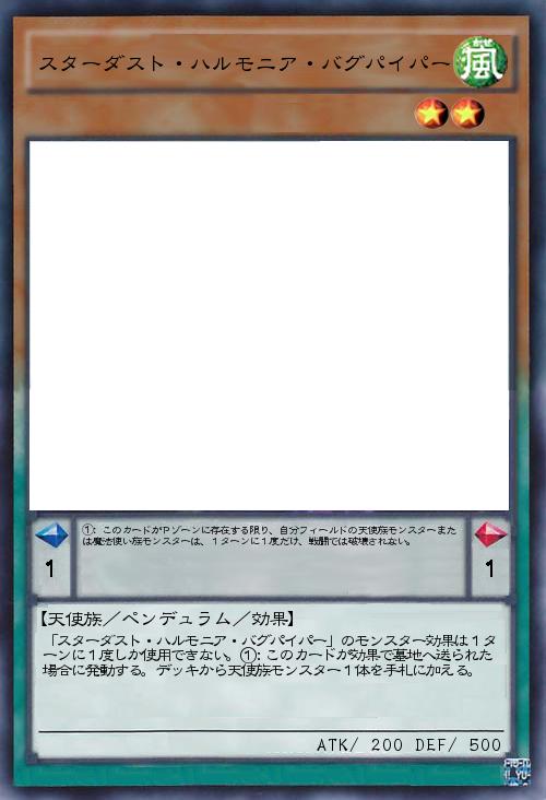 | 「スターダスト・ハルモニア・バグパイパー」のモンスター効果は1ターンに1度しか使用できない。①:このカードが効果で墓地へ送られた場合に発動する。デッキから天使族モンスター1体を手札に加える。 | |||