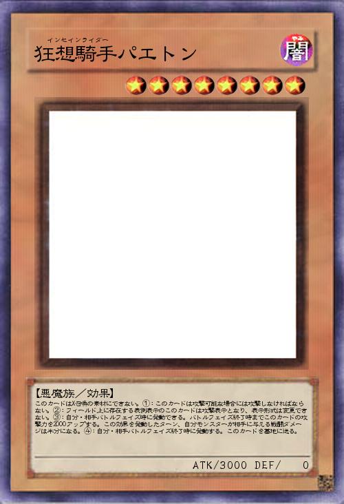 「狂想の中でもさらに火力に特化した最上級モンスター。戦車に乗って全力の一撃をぶっ放す代わりすぐに力尽きます。ちなみに④は③を発動していなくても勝手に発動することに注意。相手がバトルフェイズに入る→そのままバトルフェイズ終了でも自爆します。」(2016-12-08 08:23)