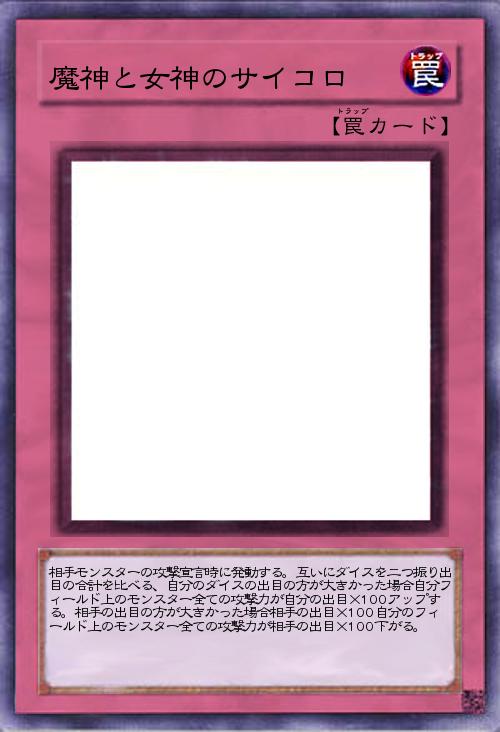 「何が起こるかわからない感じの楽しい感じのカードを作ってみました。使いたい方はご自由にどうぞ。イメージは城之内の天使のサイコロと悪魔のサイコロですね。あんな感じにどうなるかワクワクする感じか好きなので作成しました」(2016-12-15 20:40)