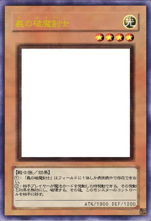 | ①:「義の破魔剣士」はフィールドに1体しか表側表示で存在できない。 ②:相手プレイヤーが魔法カードを発動した時発動できる。その発動と効果を無効にし、破壊する。その後、このモンスターのコントロールを相手に移す。 | |||