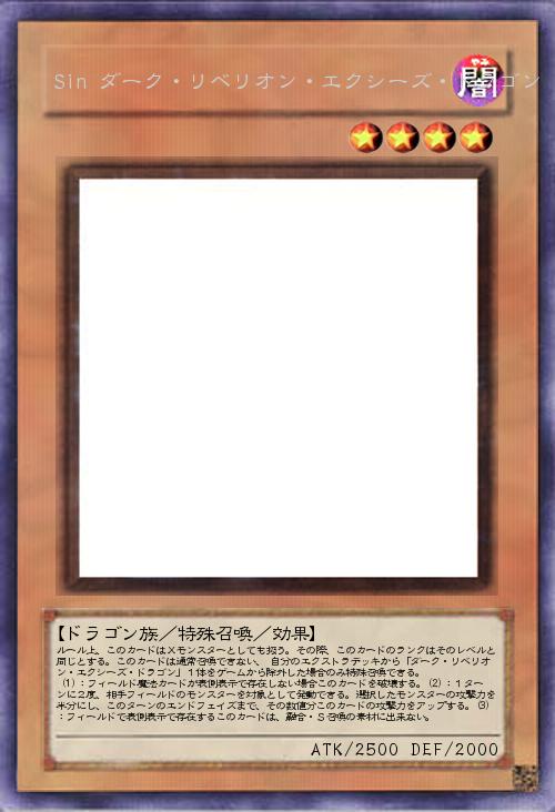 「覇王龍ズァークとダークレクイエムの召喚に対応するようにしたSin化したダベリオンです。感想お待ちしています。」(2016-12-28 22:45)