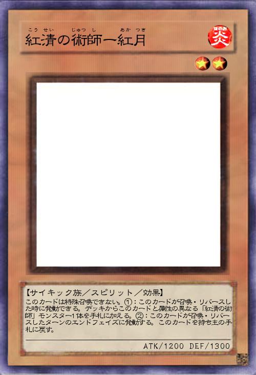 カテゴリ版荒魂ともいえるモンスター。サーチ時のレベル制限・ステータス制限・回数制限が無いので脳開発を使って二体出して二体サーチも。手札に握りさえすれば毎ターン他の術師を確保出来るので、紅月3積み+荒魂3積みの耐性で望みたい所。