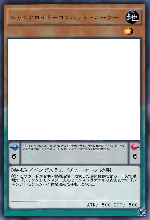 | ①:このカードが召喚・特殊召喚に成功した時に発動できる。自分の墓地の「ジャンク」モンスターまたはエクストラデッキの表側表示の「ジャンク」モンスター1体を選んで手札に加える。 | |||