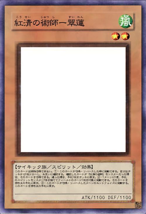 | このカードは特殊召喚できない。①:このカードが召喚・リバースした時に発動できる。自分はデッキから1枚ドローし、お互いに確認する。確認したカードが「紅清の術師」モンスターだった場合、そのカードを召喚できる。違った場合、手札1枚をデッキに戻す。②:1ターンに1度、手札のスピリットモンスター1体を捨ててフィールドのカード1枚を対象に発動できる。そのカードを持ち主の手札に戻す。③:このカードが召喚・リバースしたターンのエンドフェイズに発動する。このカードを持ち主の手札に戻す。 | |||