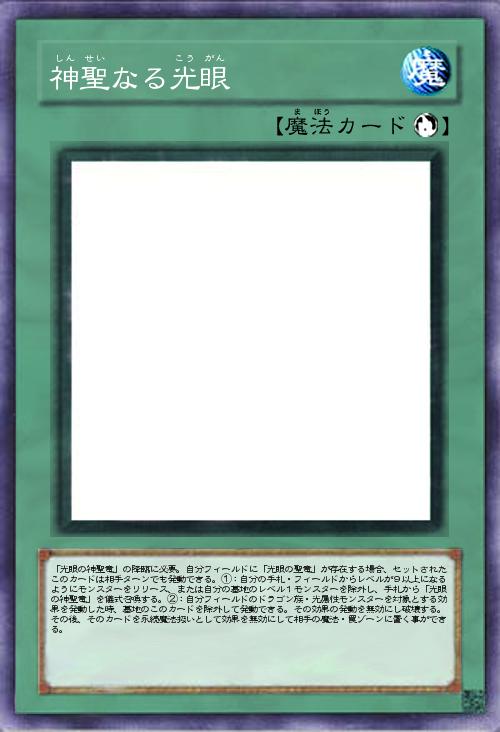 | 「光眼の神聖竜」の降臨に必要。自分フィールドに「光眼の聖竜」が存在する場合、セットされたこのカードは相手ターンでも発動できる。①:自分の手札・フィールドからレベルが9以上になるようにモンスターをリリース、または自分の墓地のレベル1モンスターを除外し、手札から「光眼の神聖竜」を儀式召喚する。②:自分フィールドのドラゴン族・光属性モンスターを対象とする効果を発動した時、墓地のこのカードを除外して発動できる。その効果の発動を無効にし破壊する。その後、そのカードを永続魔法扱いとして効果を無効にして相手の魔法・罠ゾーンに置く事ができる。 | |||