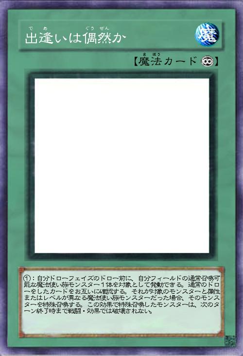 | ①:自分ドローフェイズのドロー前に、自分フィールドの通常召喚可能な魔法使い族モンスター1体を対象として発動できる。通常のドローをしたカードをお互いに確認する。それが対象のモンスターと属性またはレベルが異なる魔法使い族モンスターだった場合、そのモンスターを特殊召喚する。この効果で特殊召喚したモンスターは、次のターン終了時まで戦闘・効果では破壊されない。 | |||