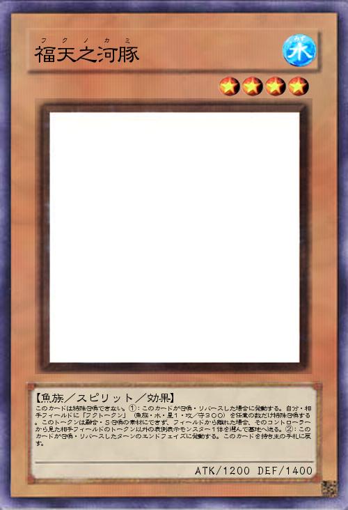| このカードは特殊召喚できない。①:このカードが召喚・リバースした場合に発動する。自分・相手フィールドに「フクトークン」(魚族・水・星1・攻/守300)を任意の数だけ特殊召喚する。このトークンは融合・S召喚の素材にできず、フィールドから離れた場合、そのコントローラーから見た相手フィールドのトークン以外の表側表示モンスター1体を選んで墓地へ送る。②:このカードが召喚・リバースしたターンのエンドフェイズに発動する。このカードを持ち主の手札に戻す。 | |||