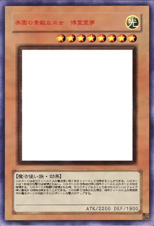 | このカードは自分フィールド上の魔法使い族1体をリリースして召喚することができる。このカードは1回目の攻撃では破壊されない。このカードの召喚成功時に相手フィールド上のカード3枚を破壊する。このカードが戦闘で破壊された時、500ライフ払うことで自分のスタンバイフェイズ時に墓地から特殊召喚することができる。この効果で召喚された場合、相手フィールド上の表側表示の魔法カードの枚数×500ポイント攻撃力がアップする。 | |||