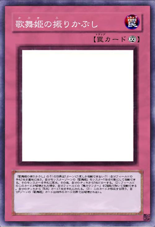 | 「歌舞姫の振りかぶし」の(1)の効果は1ターンに1度しか発動できない(1):自分フィールドの手札1枚を墓地に送り、自分モンスターゾーンの「歌舞姫」モンスター1体を対象にして発動できる。そのモンスターを手札に戻す。その後、自分のデッキから1枚ドローする。(2);フィールドのこのカードが破壊された場合、自分フィールドの「舞カウンター」を2個取り除いて発動できる。自分のデッキから「RUM」カード1枚を手札に加える。(3): このカードが存在する限り、自分Pゾーンの「歌舞姫」カードは相手のカード効果では破壊されない。 | |||