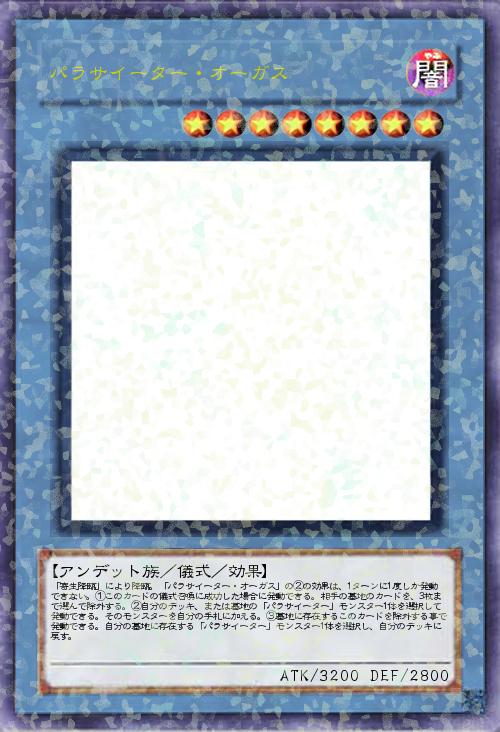 「パラサイーターの儀式モンスターです。1ターンに1度、自分のデッキ、または墓地から「パラサイーター」モンスターを手札に加えられる効果を持ち、打点もかなり高いです。効果や戦闘耐性は無いのでご注意を。」(2017-01-25 20:29)