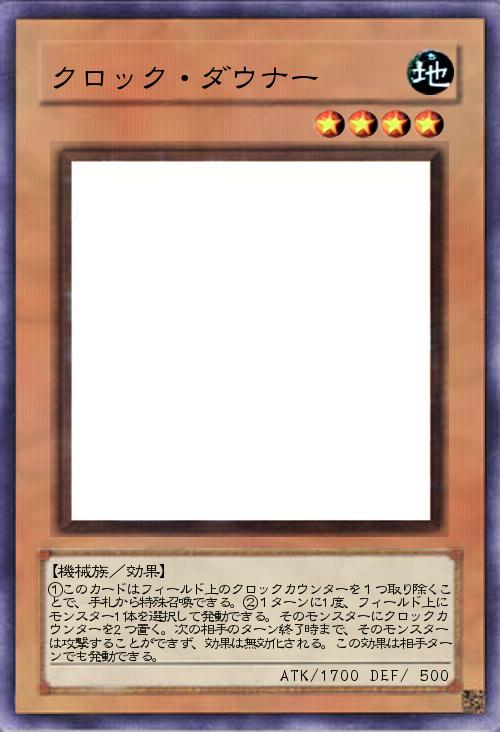 | ①このカードはフィールド上のクロックカウンターを1つ取り除くことで、手札から特殊召喚できる。②1ターンに1度、フィールド上にモンスター1体を選択して発動できる。そのモンスターにクロックカウンターを2つ置く。次の相手のターン終了時まで、そのモンスターは攻撃することができず、効果は無効化される。この効果は相手ターンでも発動できる。 | |||