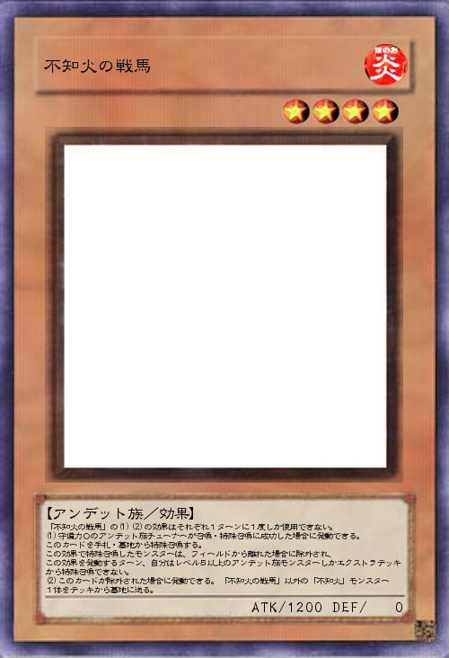 | 「不知火の戦馬」の(1)(2)の効果はそれぞれ1ターンに1度しか使用できない。 (1)守備力0のアンデット族チューナーが召喚・特殊召喚に成功した場合に発動できる。 このカードを手札・墓地から特殊召喚する。 この効果で特殊召喚したモンスターは、フィールドから離れた場合に除外され、 この効果を発動するターン、自分はレベル5以上のアンデット族モンスターしかエクストラデッキから特殊召喚できない。 (2)このカードが除外された場合に発動できる。「不知火の戦馬」以外の「不知火」モンスター1体をデッキから墓地に送る。 | |||