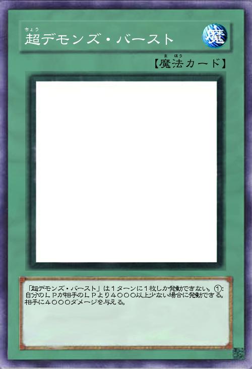 | 「超デモンズ・バースト」は1ターンに1枚しか発動できない。①:自分のLPが相手のLPより4000以上少ない場合に発動できる。相手に4000ダメージを与える。 | |||