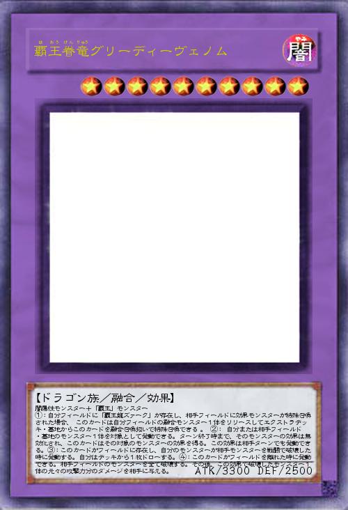「覇王眷竜のグリーディーヴェノム版です。効果はグリーディーヴェノム元々の効果に加えて、強欲さを加えるためにドロー効果とフィールド離れるとサンダーボルトの効果を付けました。
