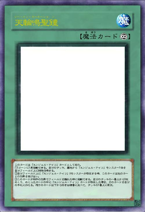 | このカードは「エンジェル・ナイツ」カードとして扱う。 ①1ターンに1度発動できる。自分のデッキ、墓地から「エンジェル・ナイツ」モンスター1体を自分フィールド上に特殊召喚する。 ②自分フィールド上に「エンジェル・ナイツ」Xモンスターが存在する時、このカードは他のカードの効果を受けない。 ③このカードが相手の効果でフィールドを離れた時に発動できる。自分のデッキの一番上から5枚めくり、めくったカードの中に「エンジェル・ナイツ」カードが存在した場合、そのカードを自分の手札に加える。残りのカードは下から好きな順番に並べて、デッキの1番上に戻す。 | |||