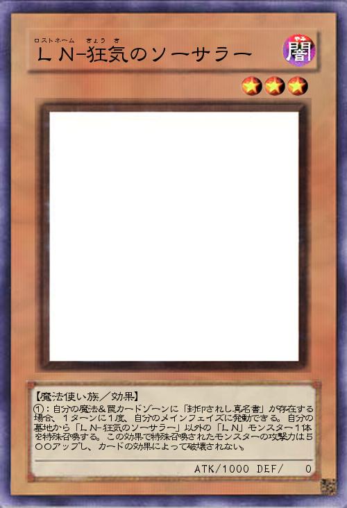 | ①:自分の魔法&罠カードゾーンに「封印されし真名書」が存在する場合、1ターンに1度、自分のメインフェイズに発動できる。自分の墓地から「LN-狂気のソーサラー」以外の「LN」モンスター1体を特殊召喚する。この効果で特殊召喚されたモンスターの攻撃力は500アップし、カードの効果によって破壊されない。 | |||