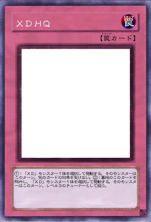 | ①:「XD」モンスター1体を選択して発動する。そのモンスターはこのターン、他のカードの効果を受けない。②:墓地のこのカードを除外し、「XD」モンスター1体を選択して発動する。そのモンスターはこのターン、レベル3のチューナーとして扱う。 | |||