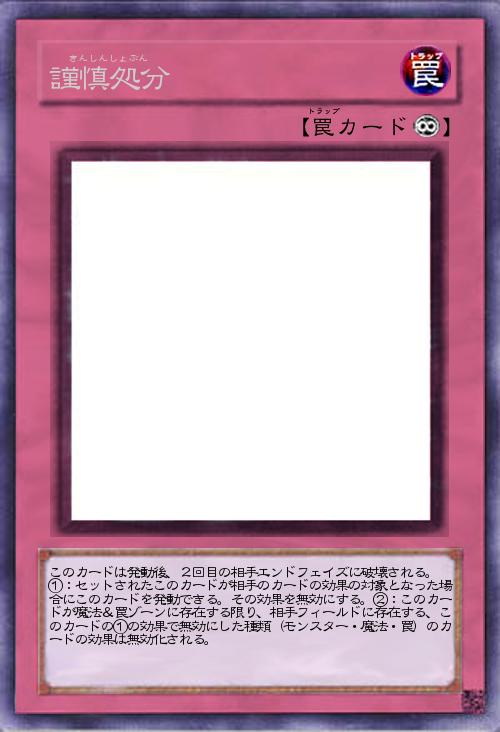 | このカードは発動後、2回目の相手エンドフェイズに破壊される。 ①:セットされたこのカードが相手のカードの効果の対象となった場合にこのカードを発動できる。その効果を無効にする。②:このカードが魔法&罠ゾーンに存在する限り、相手フィールドに存在する、このカードの①の効果で無効にした種類(モンスター・魔法・罠)のカードの効果は無効化される。 | |||