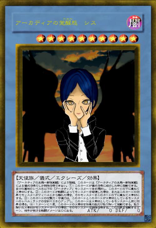 | 「アーカディアの生態ー新祖覚醒」により降臨。このカードは「アーカディアの生態ー新祖覚醒」による儀式召喚でしか特殊召喚できない。①:このカードが儀式召喚に成功した時に発動できる。自分の墓地のレベル8以下の「アーカディア」モンスター1体を選択し、このカードの下に重ねてX素材にする。②:このカードが戦闘によってモンスターを破壊した場合、またはこのカードの効果でモンスターがフィールドから離れた場合、そのモンスターをこのカードの下に重ねてX素材にする。③:このカードの攻撃力・守備力は、このカードとこのカードがX素材としているモンスターのレベル・ランクの合計×250アップし、このカードはX素材としているモンスターと同じ効果を得る。④:1ターンに1度、このカードのX素材を任意の数だけ取り除いて発動できる。取り除いたX素材がモンスターカードの場合、そのモンスターを特殊召喚する。この効果を発動するターン、相 | |||
