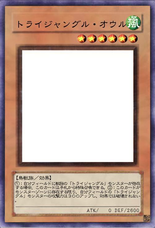 | ①:自分フィールドに獣族の「トライジャングル」モンスターが存在する場合、このカードは手札から特殊召喚できる。②:このカードがモンスターゾーンに存在する限り、自分フィールドの「トライジャングル」モンスターの攻撃力は300アップし、効果では破壊されない。 | |||