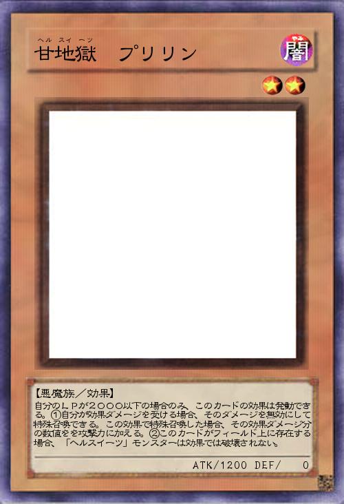 | 自分のLPが2000以下の場合のみ、このカードの効果は発動できる。①自分が効果ダメージを受ける場合、そのダメージを無効にして特殊召喚できる。この効果で特殊召喚した場合、その効果ダメージ分の数値をを攻撃力に加える。②このカードがフィールド上に存在する場合、「ヘルスイーツ」モンスターは効果では破壊されない。 | |||