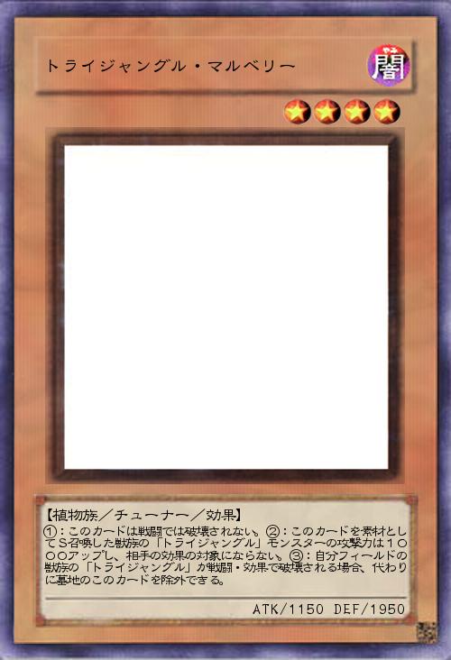 | ①:このカードは戦闘では破壊されない。②:このカードを素材としてS召喚した獣族の「トライジャングル」モンスターの攻撃力は1000アップし、相手の効果の対象にならない。③:自分フィールドの獣族の「トライジャングル」が戦闘・効果で破壊される場合、代わりに墓地のこのカードを除外できる。 | |||