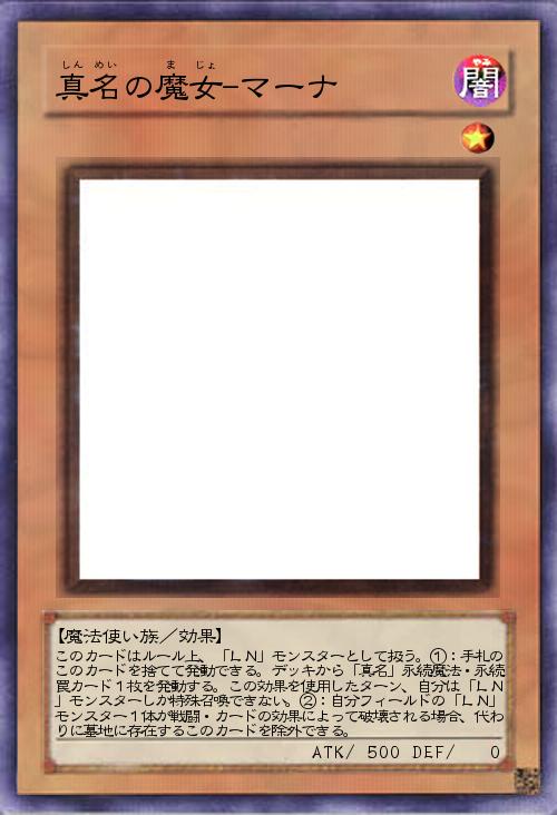 | このカードはルール上、「LN」モンスターとして扱う。①:手札のこのカードを捨てて発動できる。デッキから「真名」永続魔法・永続罠カード1枚を発動する。この効果を使用したターン、自分は「LN」モンスターしか特殊召喚できない。②:自分フィールドの「LN」モンスター1体が戦闘・カードの効果によって破壊される場合、代わりに墓地に存在するこのカードを除外できる。 | |||