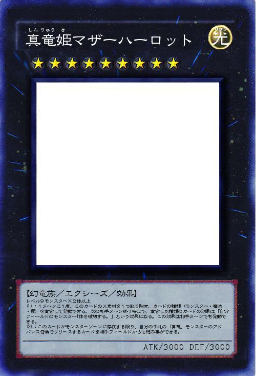 | レベル9モンスター×2体以上 (1):1ターンに1度、このカードのX素材を1つ取り除き、カードの種類(モンスター・魔法・罠)を宣言して発動できる。次の相手ターン終了時まで、宣言した種類のカードの効果は「自分フィールドのモンスター1体を破壊する。」という効果になる。この効果は相手ターンでも発動できる。 (2):このカードがモンスターゾーンに存在する限り、自分の手札の「真竜」モンスターのアドバンス召喚でリリースするカードを相手フィールドからも選ぶ事ができる。 | |||