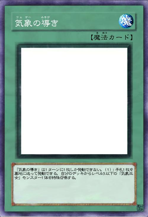 | 「気象の導き」は1ターンに1枚しか発動できない。(1):手札1枚を墓地に送って発動できる。自分のデッキからレベル3以下の「気象巫女」モンスター1体を特殊召喚する。 | |||