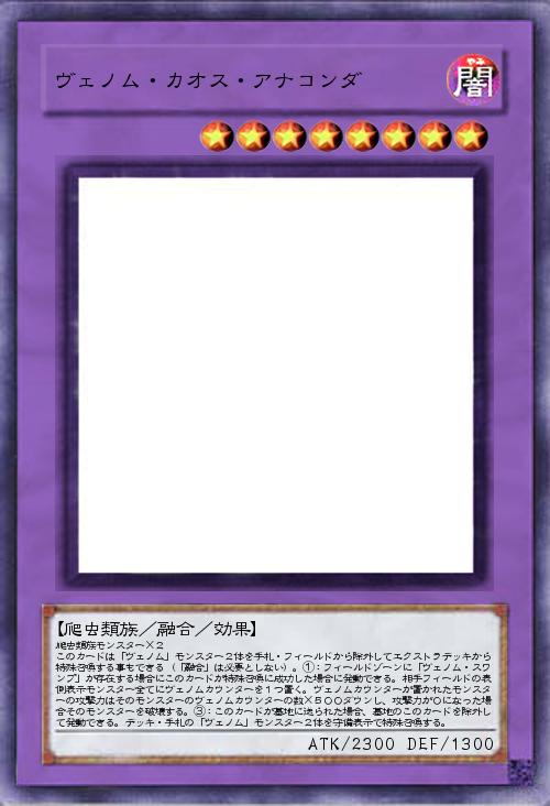 | 爬虫類族モンスター×2 このカードは「ヴェノム」モンスター2体を手札・フィールドから除外してエクストラデッキから特殊召喚する事もできる(「融合」は必要としない)。①:フィールドゾーンに「ヴェノム・スワンプ」が存在する場合にこのカードが特殊召喚に成功した場合に発動できる。相手フィールドの表側表示モンスター全てにヴェノムカウンターを1つ置く。ヴェノムカウンターが置かれたモンスターの攻撃力はそのモンスターのヴェノムカウンターの数×500ダウンし、攻撃力が0になった場合そのモンスターを破壊する。③:このカードが墓地に送られた場合、墓地のこのカードを除外して発動できる。デッキ・手札の「ヴェノム」モンスター2体を守備表示で特殊召喚する。 | |||