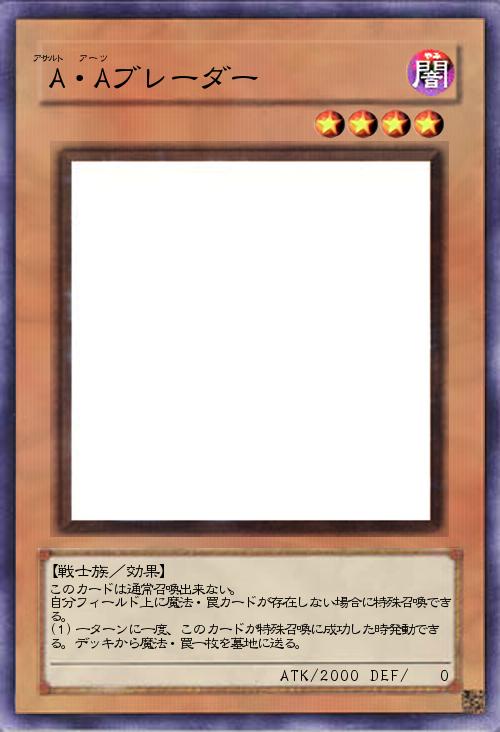 | このカードは通常召喚出来ない。 自分フィールド上に魔法・罠カードが存在しない場合に特殊召喚できる。 (1)一ターンに一度、このカードが特殊召喚に成功した時発動できる。デッキから魔法・罠一枚を墓地に送る。 | |||