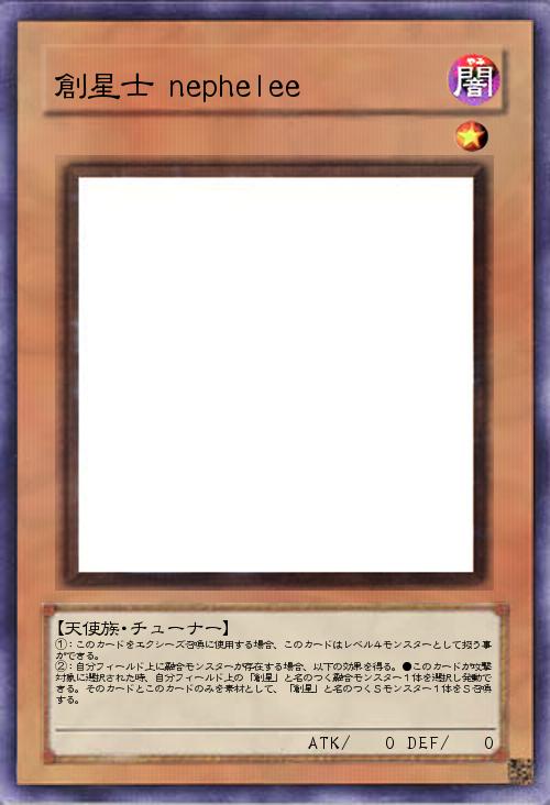 | ①:このカードをエクシーズ召喚に使用する場合、このカードはレベル4モンスターとして扱う事ができる。 ②:自分フィールド上に融合モンスターが存在する場合、以下の効果を得る。●このカードが攻撃対象に選択された時、自分フィールド上の「創星」と名のつく融合モンスター1体を選択し発動できる。そのカードとこのカードのみを素材として、「創星」と名のつくSモンスター1体をS召喚する。 | |||