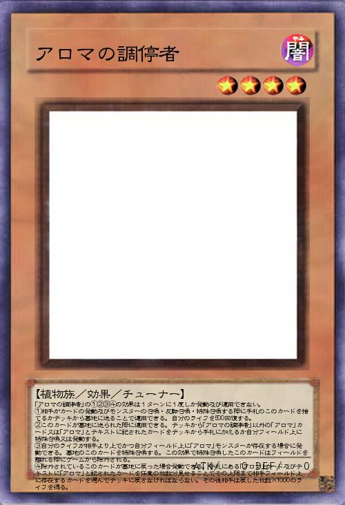 | 「アロマの調停者」の①②③④の効果は1ターンに1度しか発動及び適用できない。 ①相手がカードの発動及びモンスターの召喚・反転召喚・特殊召喚する際に手札のこのカードを捨てるかデッキから墓地に送ることで適用できる。自分のライフを500回復する。 ②このカードが墓地に送られた際に適用できる。デッキから「アロマの調停者」以外の「アロマ」カード又は「アロマ」とテキストに記されたカードをデッキから手札に加えるか自分フィールド上に特殊召喚又は発動する。 ③自分のライフが相手より上でかつ自分フィールド上に「アロマ」モンスターが存在する場合に発動できる。墓地のこのカードを特殊召喚する。この効果で特殊召喚したこのカードはフィールドを離れる際にゲームから除外される。 ④除外されているこのカードが墓地に戻った場合発動できる。手札にある「アロマ」カード及びテキストに「アロマ」と記されたカードを任意の枚数分見せること | |||