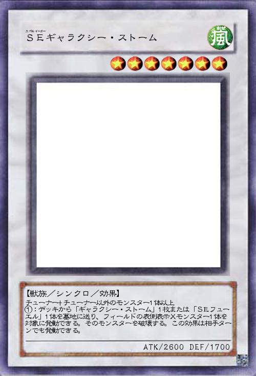| チューナー+チューナー以外のモンスター1体以上 ①:デッキから「ギャラクシー・ストーム」1枚または「SEフューエル」1体を墓地に送り、フィールドの表側表示Xモンスター1体を対象に発動できる。そのモンスターを破壊する。この効果は相手ターンでも発動できる。 | |||
