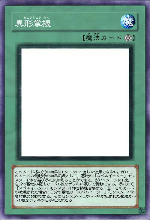 | このカード名の①の効果は1ターンに1度しか使用できない。①:このカードの発動時の効果処理として、墓地の「スペルイーター」モンスター1体を選び手札に加えることができる。②:1ターンに1度、自分の墓地の魔法カード1枚をデッキに戻して発動できる。手札から「スペルイーター」モンスター1体を特殊召喚する。③:このカードが破壊された場合に自分の墓地の「スペルイーター」モンスター1体を対象に発動できる。そのモンスターにカード名が記された魔法カード1枚をデッキから手札に加える。 | |||