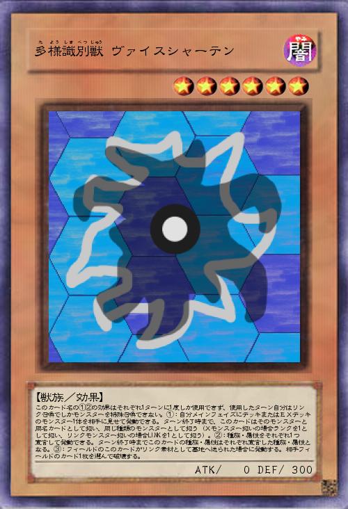 効果は強いがレベルが高いと展開がしにくいモンスターになりましたね…。この性能で下級だと何かと暴れそうではありましたが、多様識別獣のレベルをばらけさせたいというのが1つありまして高レベルになりました。